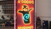 While in Portland, I walked by the original Voodoo Doughnut and thought what a crazy concept for a doughnut shop, a year later we were asked to work on their new location at CityWalk. This was a great project with a retro feel, meaning there was going to be a lot of exposed neon. We also fabricated multiple signs inside the store, but the real kicker was a large doughnut monster to be used as a photo op! The monster was hand sculpted in foam, then hard coated with fiberglass and finished off with multiple layers of gelcoat. The finished piece was a big hit and well received as evident by all of the guests who take photos with it each day!